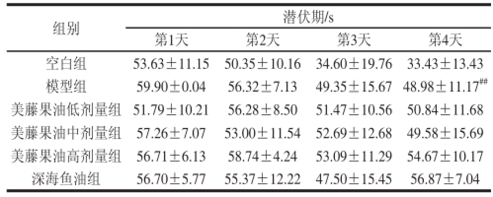表3 美藤果油对小鼠Morris水迷宫定向航行逃避潜伏期