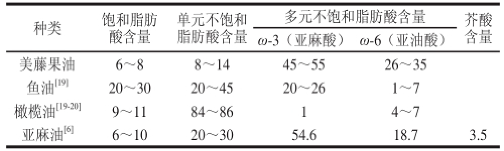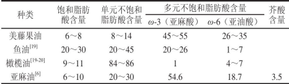 表6 各种食用油中脂肪酸组成比例