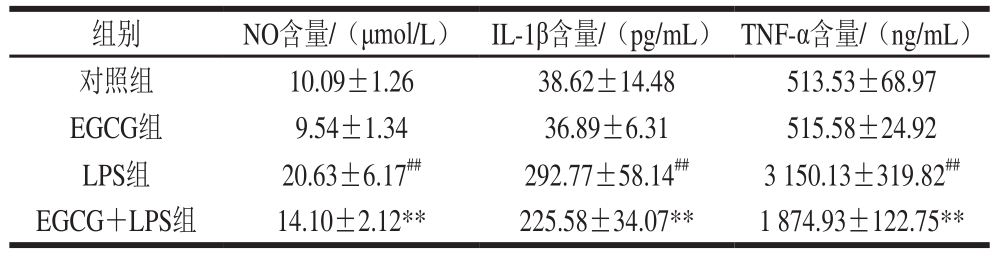 表2 EGCG对LPS处理的小鼠腹腔巨噬细胞中NO 、IL-1β和TNF-α含量的影响