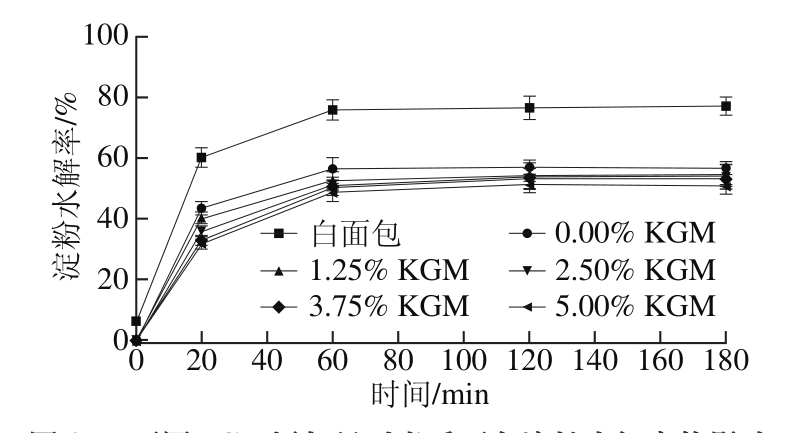 Fig.3 Effect of KGM on starch hydrolysis rate during in vitro digestion of cooked noodles