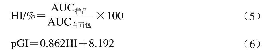 式中:AUC样品、AUC白面包分别为样品和白面包淀粉水解曲线下积分面积。