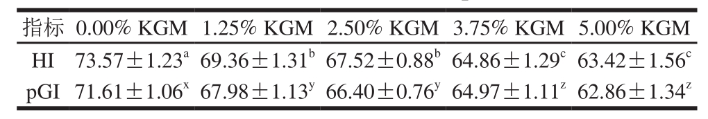 Table2 Effect of KGM on HI and pGI of noodles