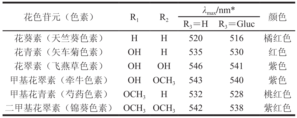 Table 1 Structures and chromatic features of natural anthocyanin aglycones[18]
