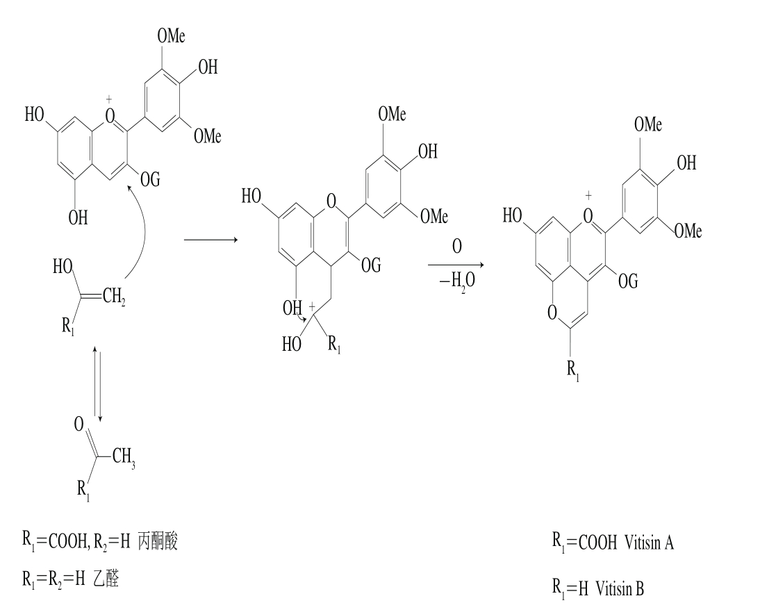 Fig. 4 Proposed formation mechanism of Vitisins-like pyranoanthocyanins[13]