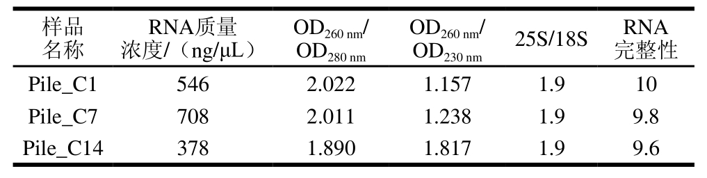 由表1可知,所提取的3 组RNA质量较好,可以进行文库构建以及后续测序分析。