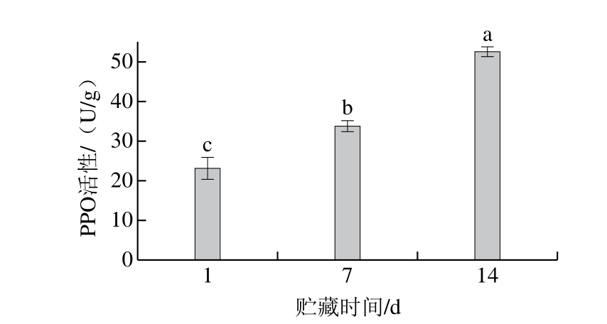 图10 采后双孢蘑菇4 ℃贮藏时间PPO活性的变化