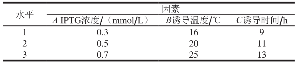 表1 IPTG诱导条件优化L9(33)正交试验因素与水平