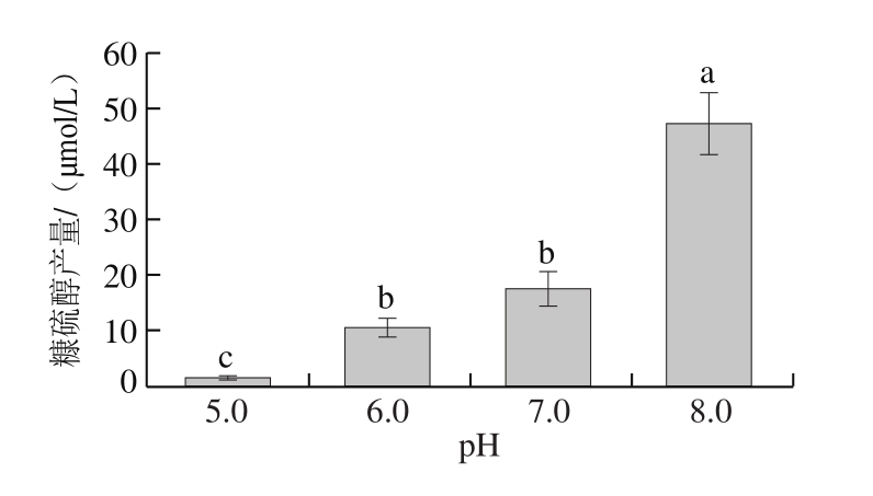 图9 不同pH值条件下糠硫醇产量