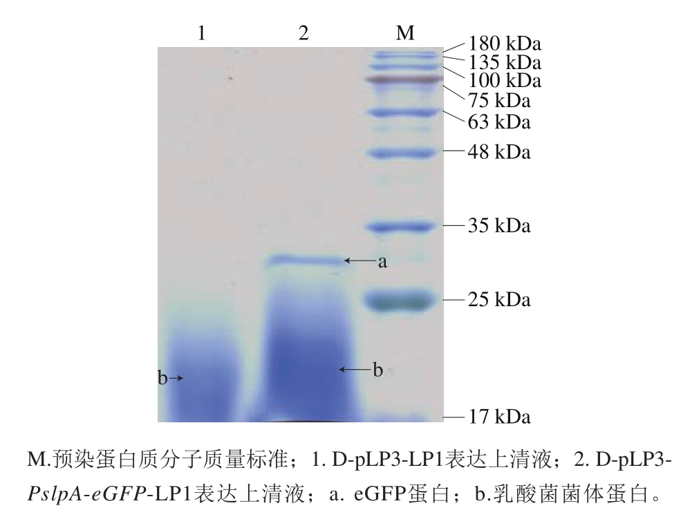 图8 重组植物乳杆菌eGFP蛋白的SDS-PAGE鉴定