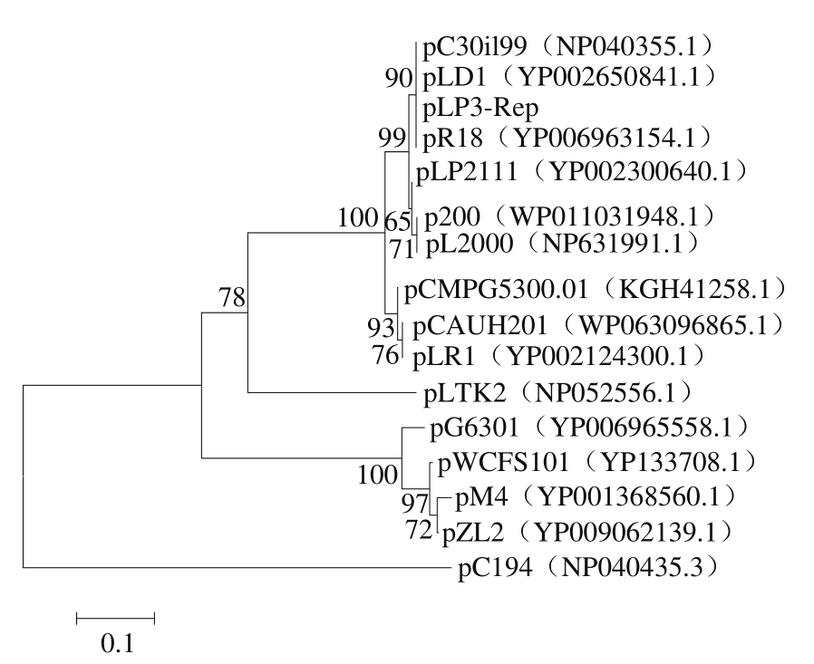 图5 pLP3质粒编码的Rep蛋白系统发育树