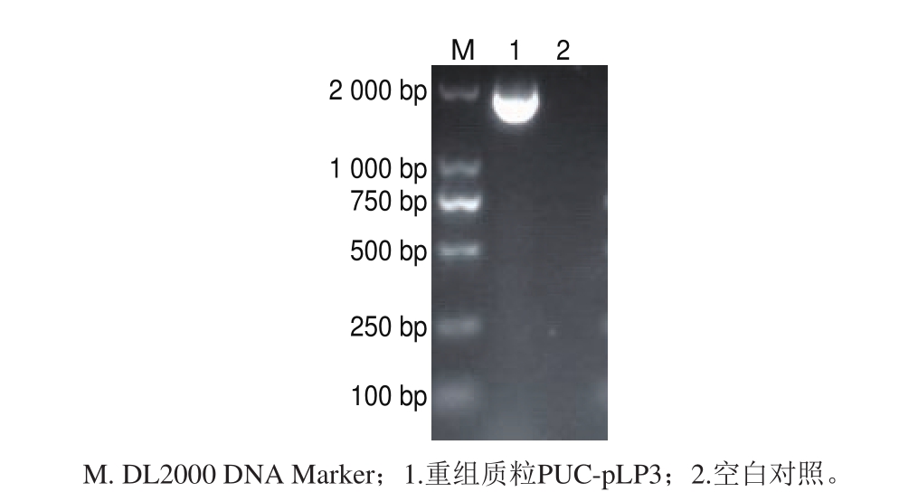 图3 重组质粒PUC-pLP3的PCR鉴定